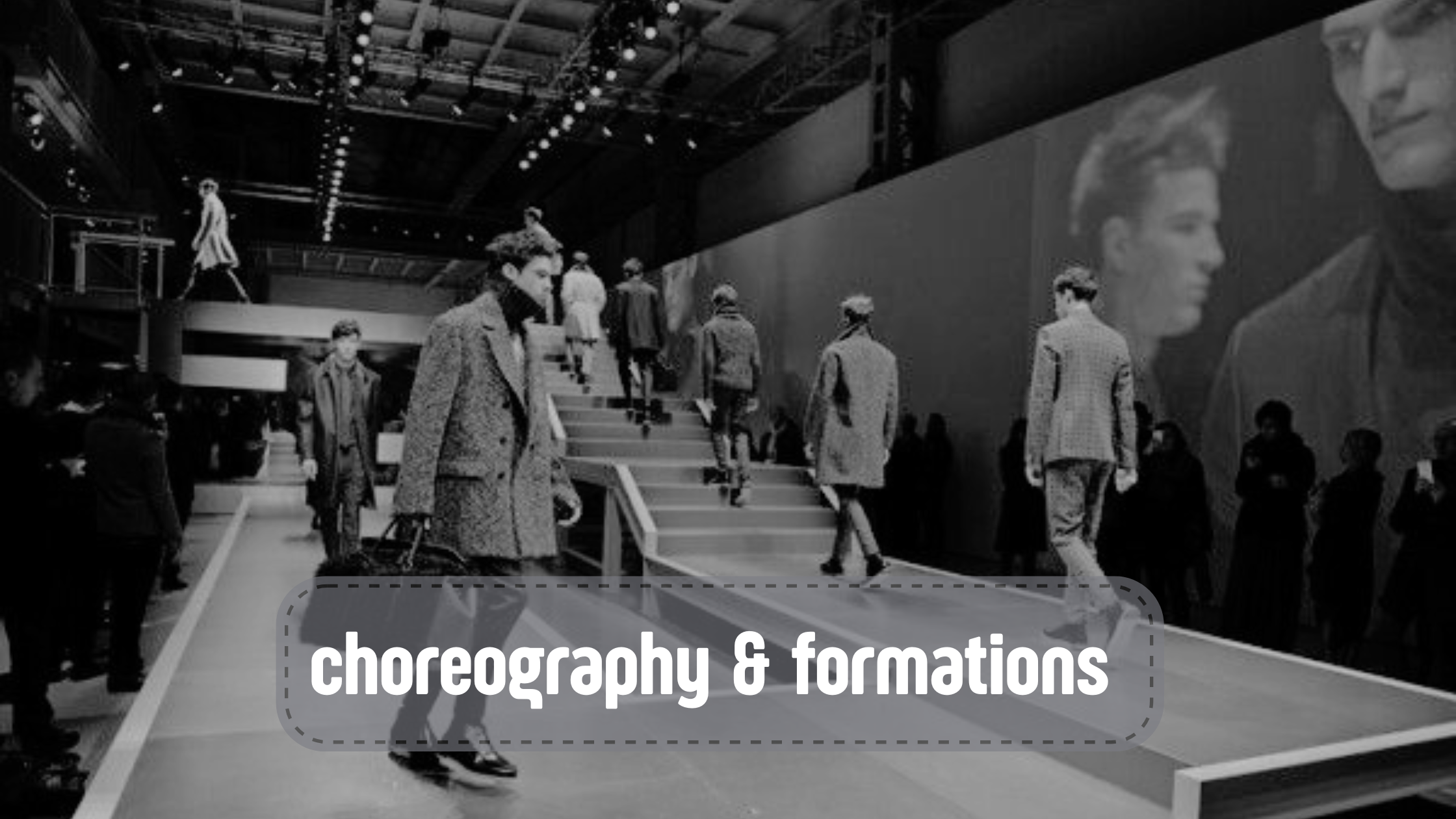 Master catwalk techniques focusing on posture, stride, and rhythm. Learn basic choreography for smooth transitions and practice triangle formations to build group coordination, stage presence, and confidence for runway shows